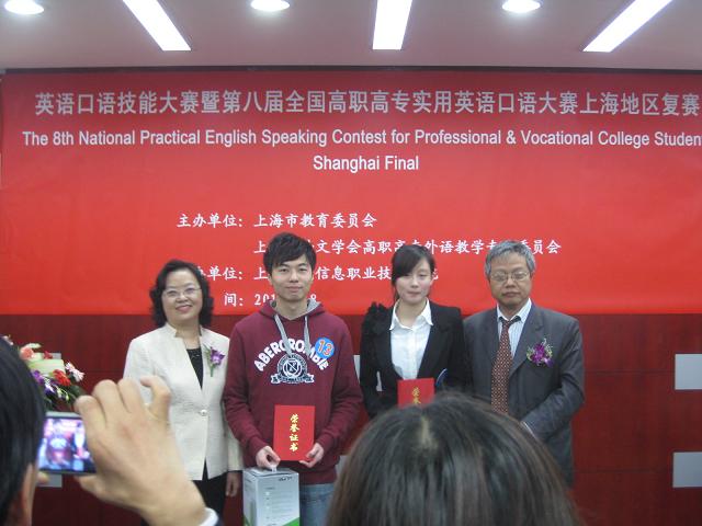 外語系俞洋同學(xué)榮獲第八屆全國(guó)高職高專實(shí)用英語口語大賽上海地區(qū)一等獎(jiǎng)