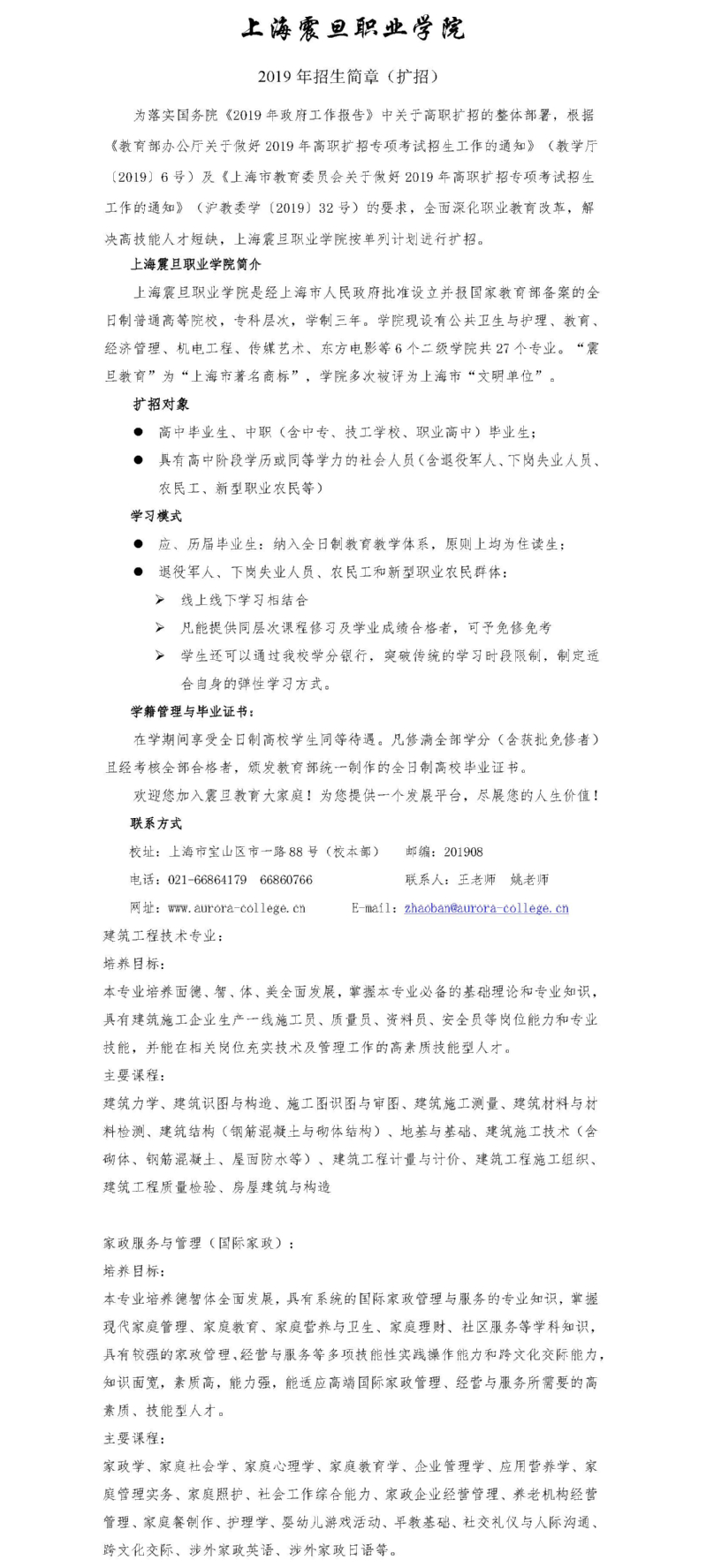 上海震旦職業(yè)學院2019年招生簡章(擴招)
