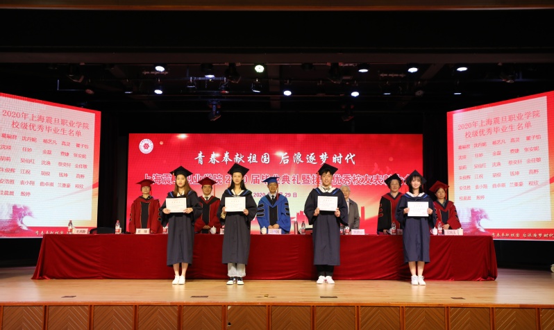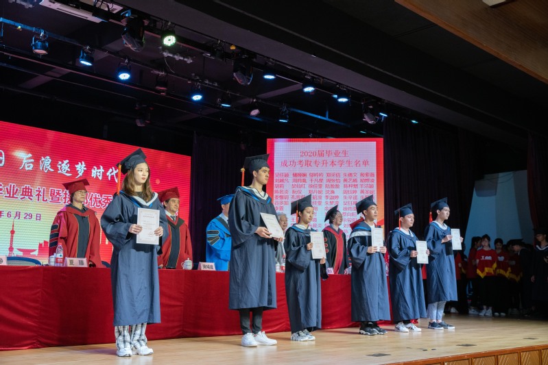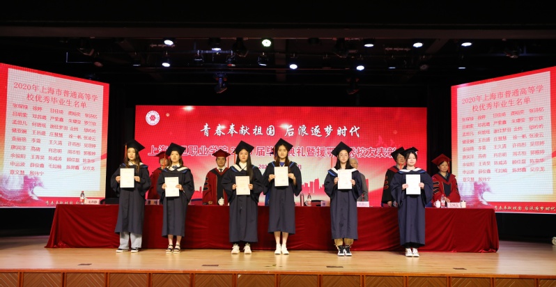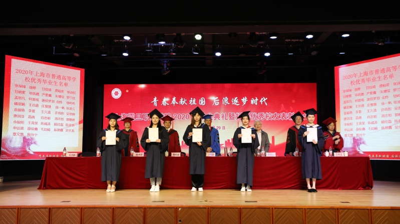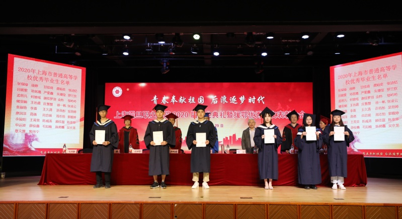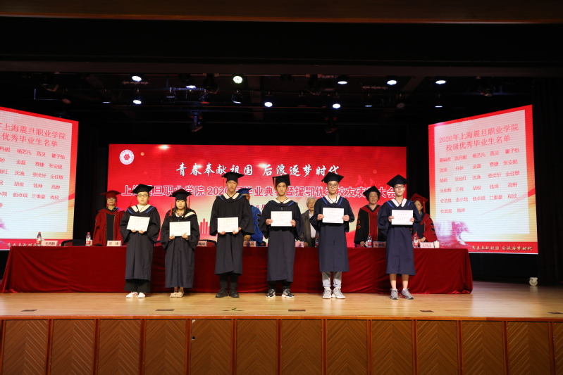 畢業(yè)典禮上表彰了“2020年上海市普通高等學(xué)校優(yōu)秀畢業(yè)生和上海震旦職業(yè)學(xué)院校級優(yōu)秀畢業(yè)生”。黨委副書記夏臻宣讀了《表彰決定》以及《2020屆畢業(yè)生中考取全日制專升本學(xué)生名單》;上海市高校優(yōu)秀畢業(yè)生代表以及校優(yōu)秀畢業(yè)生代表上臺領(lǐng)取了榮譽證書。