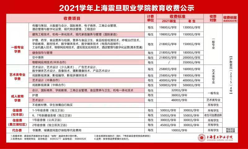 2021學(xué)年上海震旦職業(yè)學(xué)院教育收費公示