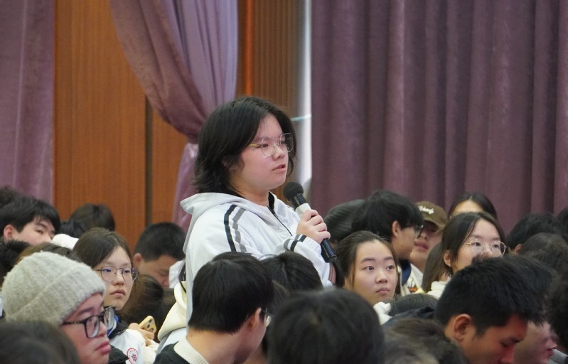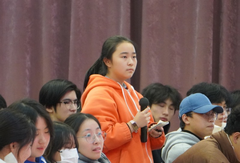 王曙群還與學(xué)生進(jìn)行了現(xiàn)場(chǎng)互動(dòng)。同學(xué)們頻頻舉手提問(wèn),王曙群老師一一作答,并鼓勵(lì)同學(xué)們要堅(jiān)守初心、不斷學(xué)習(xí),發(fā)揚(yáng)“特別能吃苦、特別能戰(zhàn)斗、特別能攻關(guān)、特別能奉獻(xiàn)”的精神。同學(xué)們近距離接觸榜樣人物,直面交流,向勞??待R。