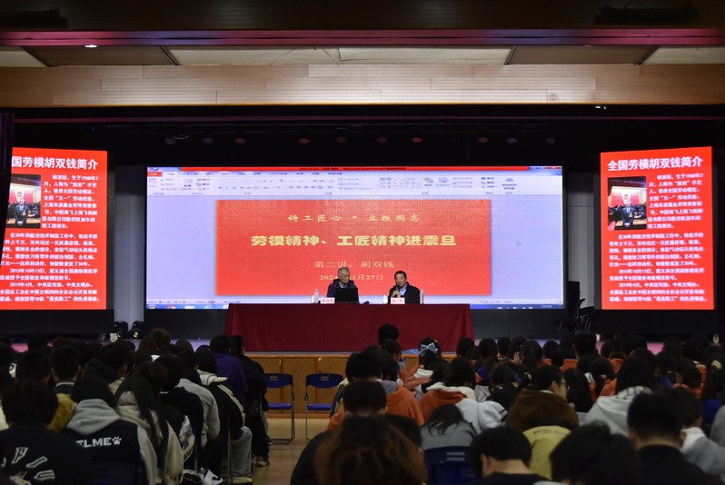 11月27日下午,我校邀請全國勞動模范、全國“五一”勞動獎?wù)?、上海市質(zhì)量金獎等榮譽(yù)稱號的獲得者胡雙錢作《工匠精神培養(yǎng)與傳承》主題報(bào)告。校黨委書記吳松、副校長王純玉、學(xué)工部長(處長)鐘劼菁、各二級學(xué)院書記及師生代表500余人聆聽了報(bào)告。報(bào)告會由吳松書記主持。