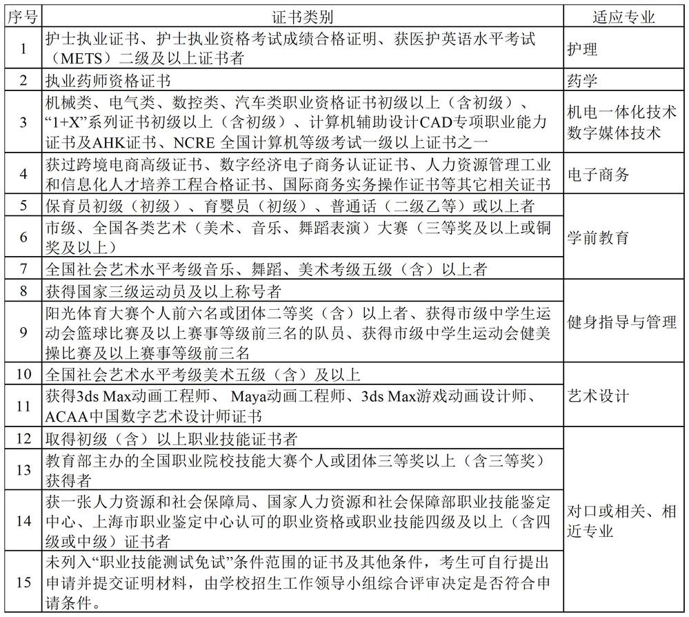 第一院校志愿報考本校,符合以下條件之一的考生可免試職業(yè)技能測試科目,成績以職業(yè)技能測試滿分計入:符合免試資格的考生,于430日前掃描二維碼提交相關(guān)材料,逾期視作自動放棄。