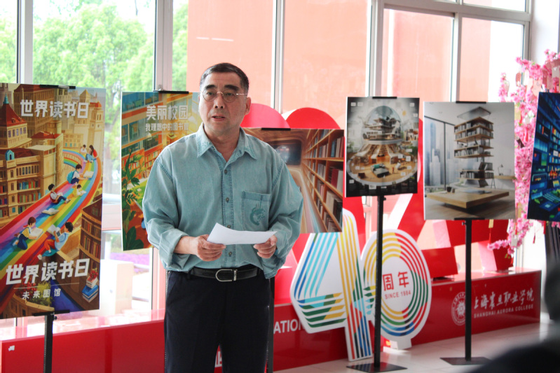 揭幕儀式上,徐榮華館長(zhǎng)致辭。他表示,這次海報(bào)創(chuàng)造大賽,是第十二屆震旦讀書(shū)服務(wù)月系列活動(dòng)之一,同學(xué)們?cè)趧?chuàng)作中感受“當(dāng)AI遇見(jiàn)圖書(shū)館,不是冰冷的技術(shù)替代,而是用科技之光重新點(diǎn)亮知識(shí)傳承的人文底色”,希望能夠激發(fā)同學(xué)們的AI興趣和愛(ài)好,把我們的校園打造成“科技+藝術(shù)”的特色校園。