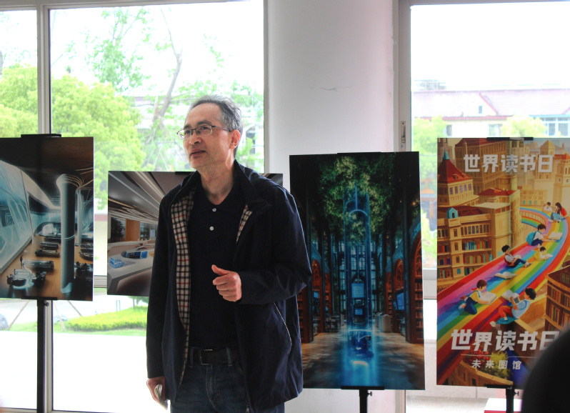 為推動(dòng)人工智能技術(shù)與校園文化深度融合,激發(fā)學(xué)生創(chuàng)新思維與藝術(shù)創(chuàng)造力,在第三十個(gè)世界讀書(shū)日來(lái)臨之際,圖書(shū)館聯(lián)合智能工程學(xué)院舉辦“智繪藍(lán)圖·AI創(chuàng)想未來(lái)”創(chuàng)作大賽海報(bào)設(shè)計(jì)展。4月22日下午,展覽在一號(hào)樓2樓大廳正式揭幕。圖書(shū)館館長(zhǎng)徐榮華、智能工程學(xué)院黨總支副書(shū)記余家晶及師生代表參加了活動(dòng)。