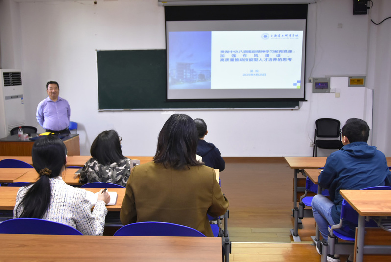 4月25日下午,黨委書記吳松為馬克思主義學(xué)院黨支部全體黨員上黨課。吳書記以“貫徹中央八項(xiàng)規(guī)定精神學(xué)習(xí)教育黨課:加強(qiáng)作風(fēng)建設(shè)、高質(zhì)量推動(dòng)技能型人才培養(yǎng)的思考”為主題,內(nèi)容豐富且深刻。他從黨的作風(fēng)對(duì)黨的形象、人心向背及生死存亡的重要影響講起,回顧了延安整風(fēng)、建國之初、改革開放之初以及十八大以來黨的作風(fēng)建設(shè)歷程,闡述了中央八項(xiàng)規(guī)定的制定、貫徹成效及違反規(guī)定的危害,并提出進(jìn)一步落實(shí)學(xué)習(xí)教育、查擺問題和整改的舉措。