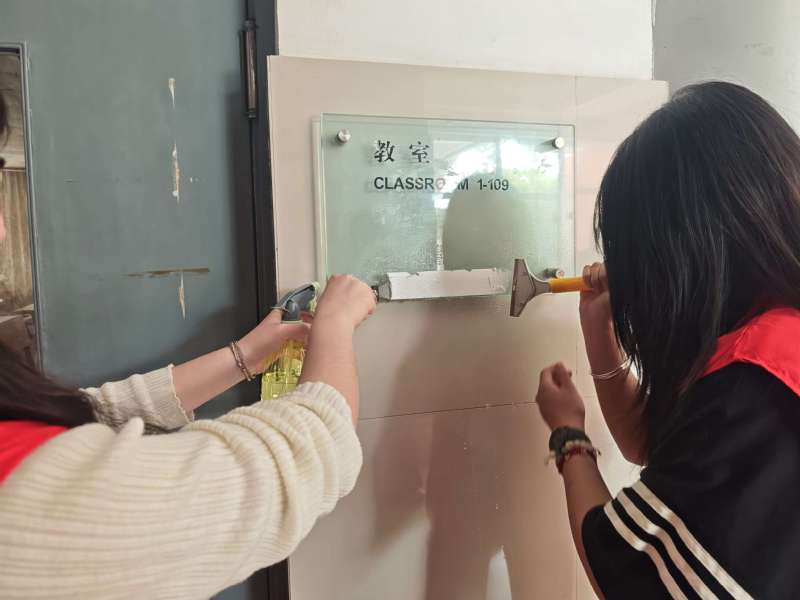 表彰會結(jié)束后,同學(xué)們熱情不減,積極響應(yīng)號召,參與校園清除“牛皮蘚”活動。大家手持工具,認(rèn)真清理教學(xué)樓、宿舍區(qū)等各處的違規(guī)張貼物。經(jīng)過數(shù)小時的努力,校園面貌煥然一新,更加整潔美觀,同學(xué)們也深刻體會到了勞動的意義與價值。相信在未來,震旦學(xué)子將繼續(xù)以勞動為筆,書寫文明校園建設(shè)的新篇章。