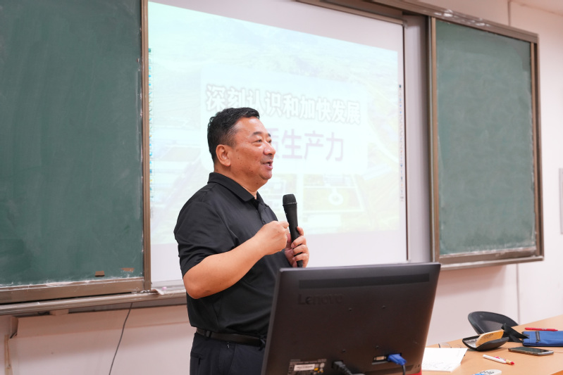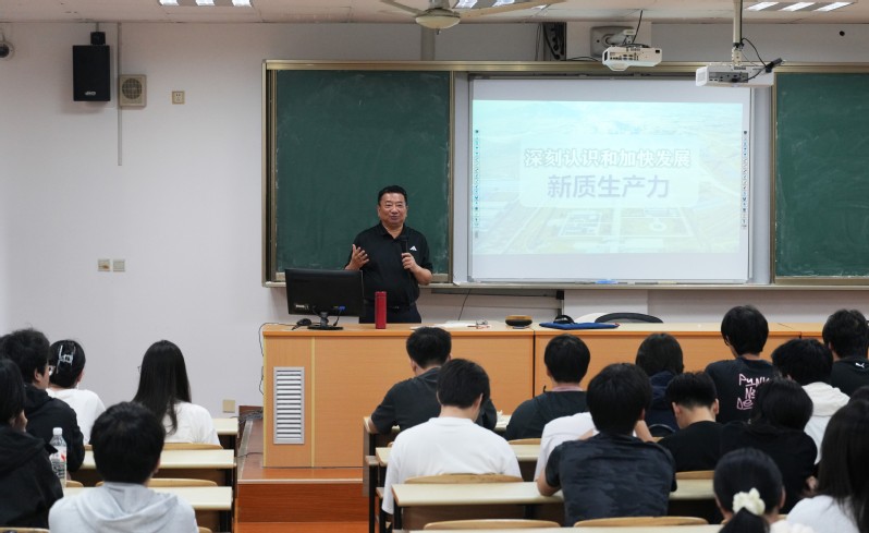 課上,吳松書記結(jié)合當(dāng)下國際國內(nèi)形勢(shì),深入剖析了新質(zhì)生產(chǎn)力的內(nèi)涵、特征與發(fā)展意義。通過列舉大量生動(dòng)鮮活的案例,詳細(xì)闡述了新質(zhì)生產(chǎn)力在推動(dòng)產(chǎn)業(yè)升級(jí)、科技創(chuàng)新等方面的重要作用,并鼓勵(lì)同學(xué)們努力學(xué)習(xí)專業(yè)知識(shí),提升自身能力,為將來投身新質(zhì)生產(chǎn)力發(fā)展奠定堅(jiān)實(shí)基礎(chǔ)。