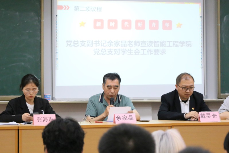 校團(tuán)委副書記戴昊奇總結(jié)發(fā)言。他首先對(duì)大會(huì)的順利召開表示祝賀,對(duì)新當(dāng)選的主席團(tuán)成員表示熱烈歡迎。他肯定了過去一年智能工程學(xué)院學(xué)生會(huì)的工作成績,感謝全體團(tuán)學(xué)干部和學(xué)生代表的辛勤付出。他指出,學(xué)生會(huì)作為學(xué)院與學(xué)生之間的橋梁,發(fā)揮了重要作用。希望新一屆學(xué)生會(huì)能夠在主席團(tuán)的帶領(lǐng)下,繼續(xù)發(fā)揚(yáng)團(tuán)結(jié)協(xié)作精神,積極創(chuàng)新工作方法,不斷提升服務(wù)質(zhì)量和水平,為學(xué)院的發(fā)展貢獻(xiàn)更多力量。