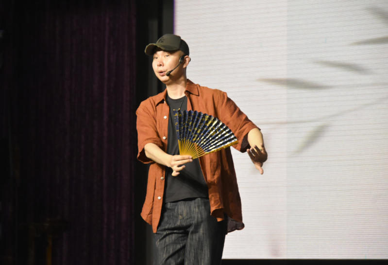 衛(wèi)立老師以通俗易懂、幽默風趣的語言講解了“百戲之祖”——昆劇的起源與發(fā)展歷程、幾種代表性聲腔,并重點介紹了“生”這一行當,還帶來了昆劇名段《懶畫眉》的精彩表演,其深厚的藝術(shù)底蘊、精湛的技藝、婉轉(zhuǎn)的唱腔、優(yōu)雅的身段,贏得了在場師生的喝彩。