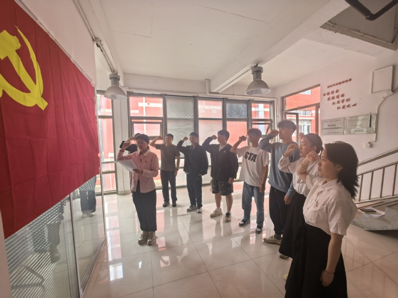 經(jīng)支部大會(huì)充分討論并以無(wú)記名投票方式進(jìn)行表決,一致同意接收楊斌等8名同志為中共預(yù)備黨員。在黨支部書(shū)記張海琳老師的帶領(lǐng)下,新發(fā)展的預(yù)備黨員面向黨旗莊嚴(yán)宣誓。