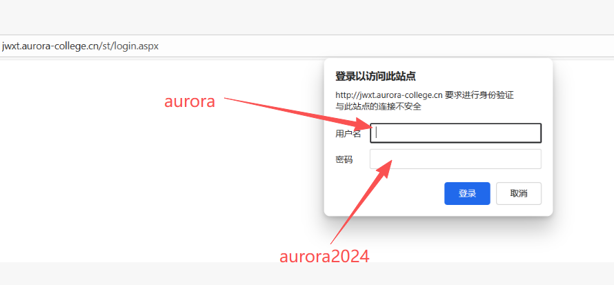 4.輸入認(rèn)證用戶名、密碼(用戶名為aurora 密碼為aurora2024)