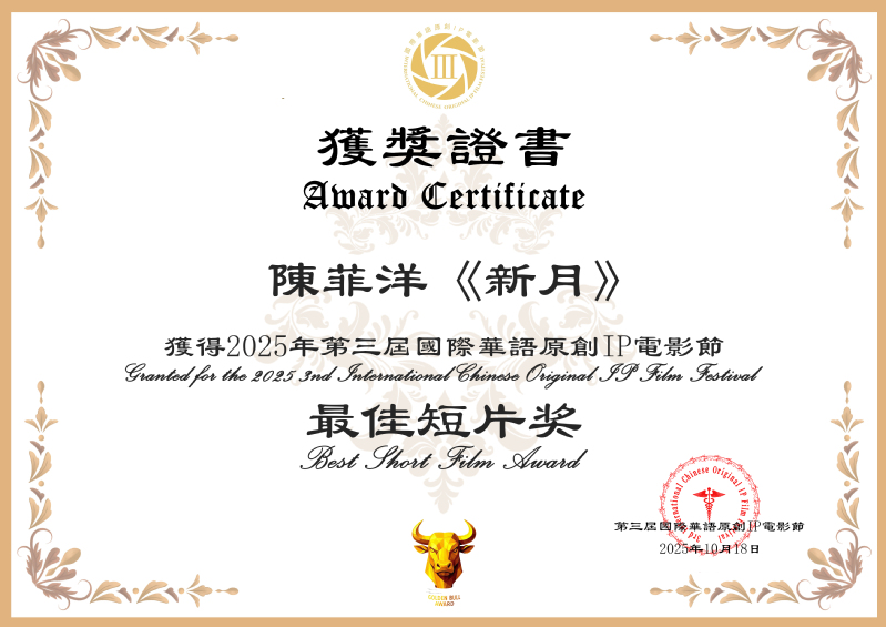 近日,第三屆國(guó)際華語(yǔ)原創(chuàng)IP電影節(jié)落下帷幕,我校東方電影與人文學(xué)院選送的2022級(jí)影視多媒體技術(shù)專(zhuān)業(yè)學(xué)生陳菲洋的短片作品《新月》脫穎而出,成功斬獲本屆電影節(jié) “最佳短片獎(jiǎng)”。