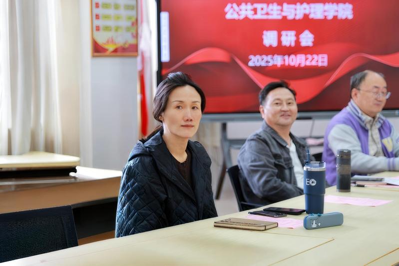 10月22日,張沈董事長、王純玉副校長、相關(guān)部門負責人深入公共衛(wèi)生與護理學院開展專題調(diào)研。公共衛(wèi)生與護理學院院領(lǐng)導、各專業(yè)主任、教研室主任及教師代表參加了調(diào)研會。
